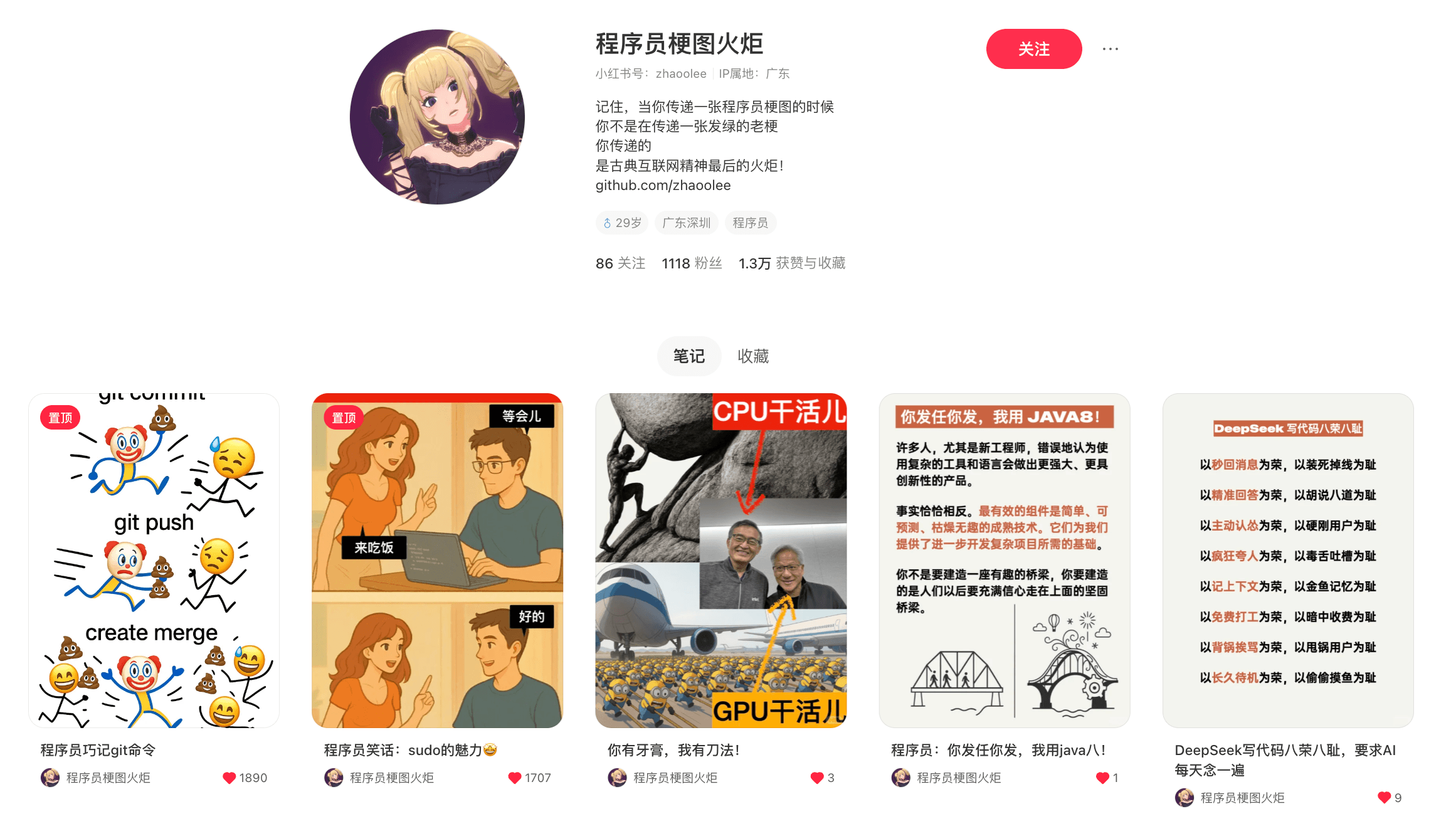 本仓库默认遵循 CC BY-NC-SA 4.0 授权。若使用或转载本项目整理的梗图素材,请在文案或页面中注明来源:“摘自《程序梗图火炬》(小红书 @zhaoolee)” 或附上链接 https://github.com/zhaoolee/xiaohongshu-programmer-memes 。如需商业用途,请额外联系维护者取得书面授权。